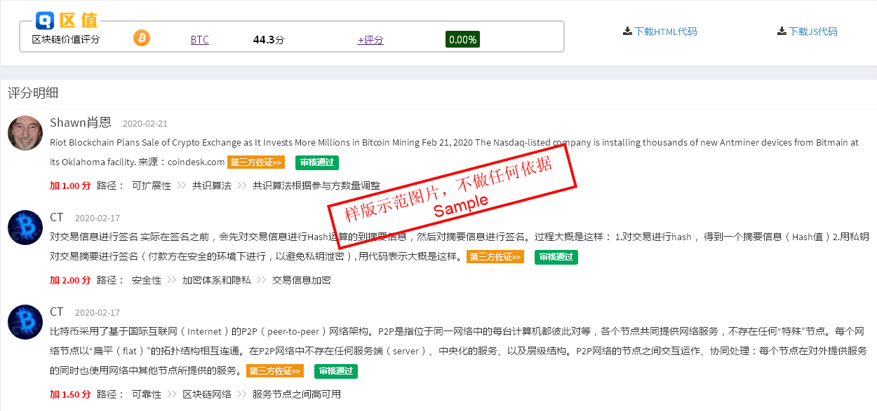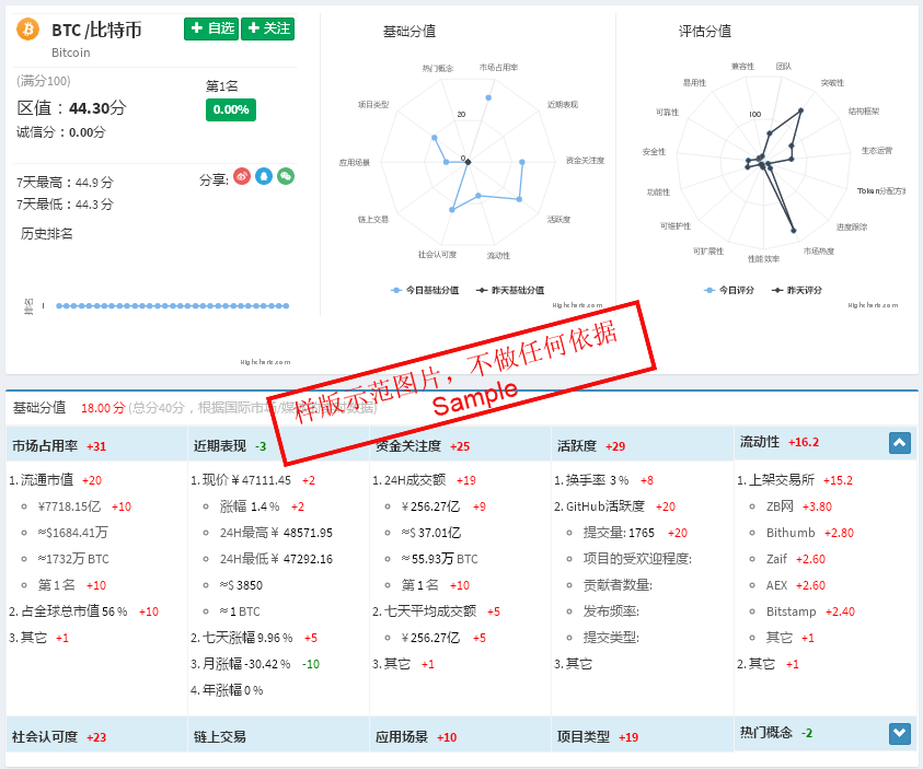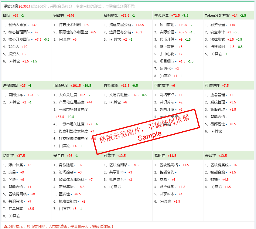 還百分六十就是用戶打分了,用戶有投資者、技術員、項目負責人等。出于各種不同的目的,有人打加分,有人打減分,并不一定真正公平。但系統會根據你提交的來源網址核查第三方佐證資料,佐證來源如果是自媒體或項目官網均無法通過系統審核,這一點跟百度百科有點像,如果佐證資料真實,那么用戶打分也是相對公平的。