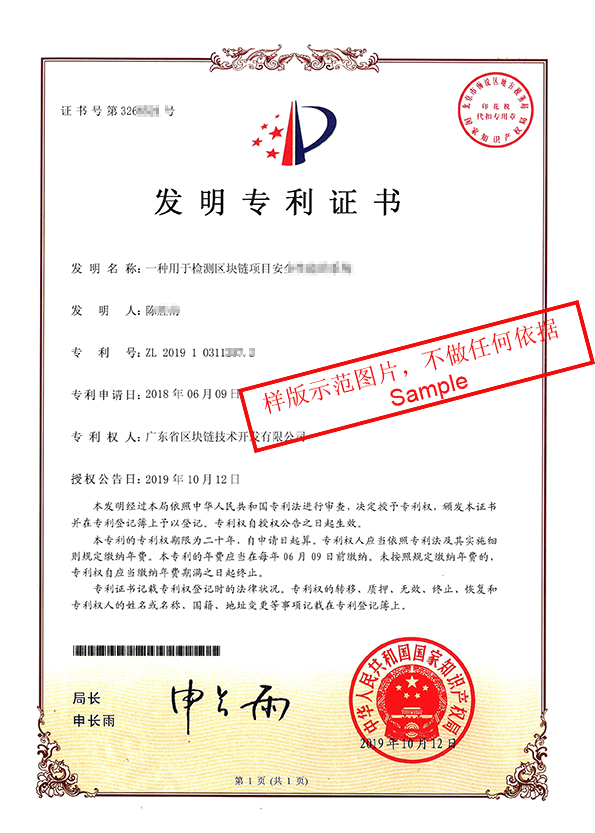 區塊鏈網通過旗下企業廣東省區塊鏈技術開發有限公司來申請了多項發明專利和商標版權保護,旨在防止有機構或個人盜用區塊鏈網的評價系統出具假冒偽劣證書。如有發現,請各網友、用戶立即致電區塊鏈網進行舉報