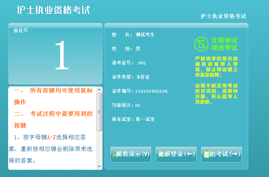 確認信息登陸之后確認一下自己的考試信息是否正確(姓名、準考證、身份證號),以及了解考試答題規(guī)則。